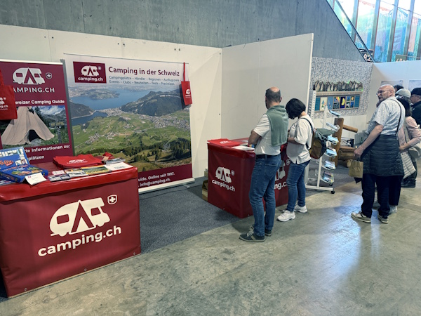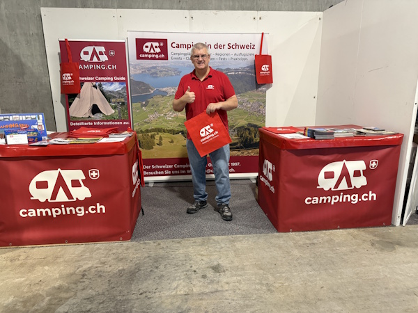 Da das Messepublikum jeweils gerne Infomaterial von der Messe mit nach Hause nimmt, um diese dann beispielsweise am Abend vor dem Kaminfeuer in Ruhe zu studieren, haben wir im Vorfeld zur Messe einige Campingplätze und Händler angeschrieben, uns ihre Flyer und Prospekte zuzusenden. Diese legten wir wie üblich an unserem Stand auf. Einige haben die Chance wahrgenommen. Am Ende der Messe hatten wir alle zugesandten Prospekte zusammen mit unseren neusten camping.ch Tragtaschen unter die Messebesucher bringen können. Viele kannten camping.ch bereits, andere haben uns neu kennengelernt. Zudem haben wir unseren Newsletter sowie das Campingspiel, auf dem wir prominent präsent sind, weiter beworben. Eine neue kompaktere Auflage des Campingspiels sollte voraussichtlich im Juni 2026 erscheinen.